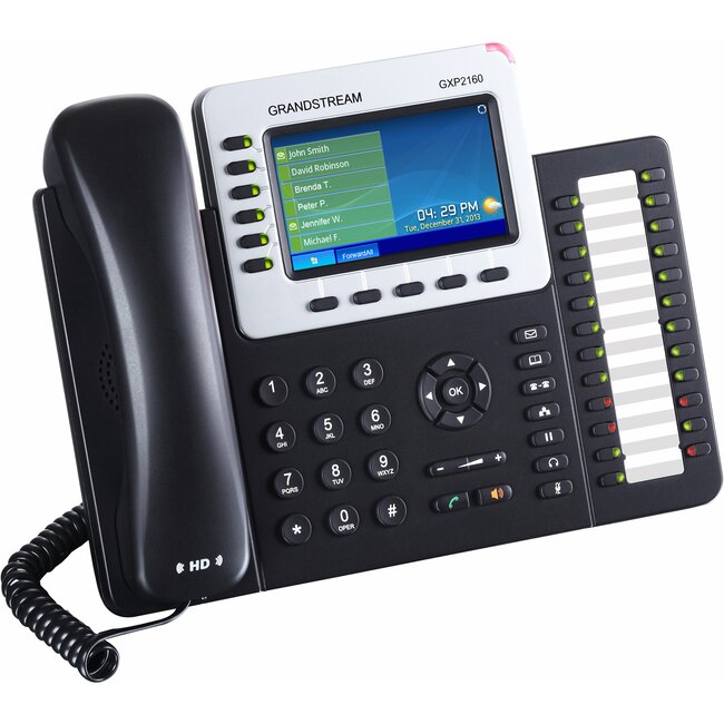 The Grandstream GXP2160 IP phone provides an efficiency-focused endpoint with its vibrant display and intuitive BLF and speed-dial keys. Focus on handling more calls and reaching more customers by utilising its 6 lines, 4.3″ LCD screen and built-on physical 24 BLF/speed-dial keys. Easily monitor presence and status of other extensions to quickly transfer calls to the right destination. Equipped with dual Gigabit, PoE network ports, Bluetooth support, and a host of other features the GXP2160 brings call control to a new level.