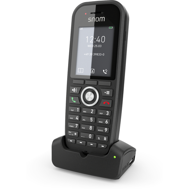 The M30 features a large colour display and fits smoothly into our line of professional handsets. It combines crystal-clear audio quality with essential call functionality and typical business functions such as holding or forwarding. Its powerful battery allows up to 22 hours talk time or up to two weeks stand-by