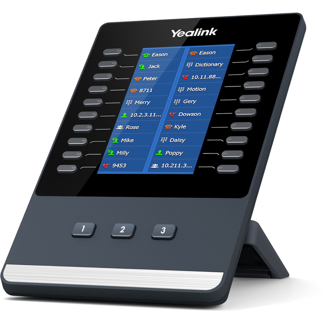 The Yealink EXP43 Color Expansion Module for Yealink T43U/T46U/T48U IP phones, is designed to expand the functional capability of your SIP phone to a whole new level. It features a large 4.3-inch color-screen LCD, giving you a vivid visual experience. In addition, it provides you with a simple user interface and advanced call handling capabilities. For example, three pages of 20 flexible button shown on the display can be programmed up to 60 various features. The functionality of Yealink T43U/T46U/T48U/T44U/T44W IP phones will also be extended by the EXP43, you can set the provided multifunctional line keys as BLF, speed dial, call forward, transfer, call park, call pickup, etc. The Yealink EXP43 Color Expansion Module is an ideal solution for receptionists, administrative assistants and contact center workers and gives you the ability to monitor contacts and manage a large volume of calls with ease.