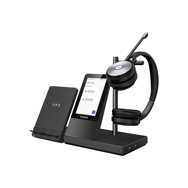 Yealink WH66 UC Dual Ear over the head DECT headset with 4″ Touch Screen, Speaker Phone and 2 Port USB Hub (WHC60 not included)